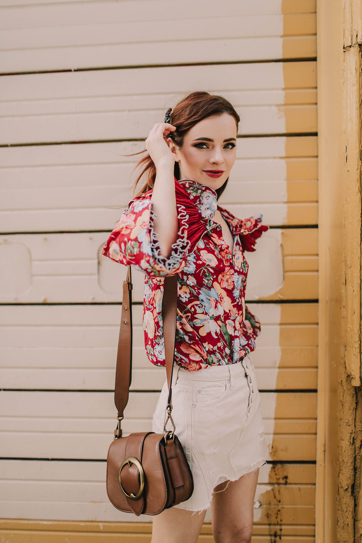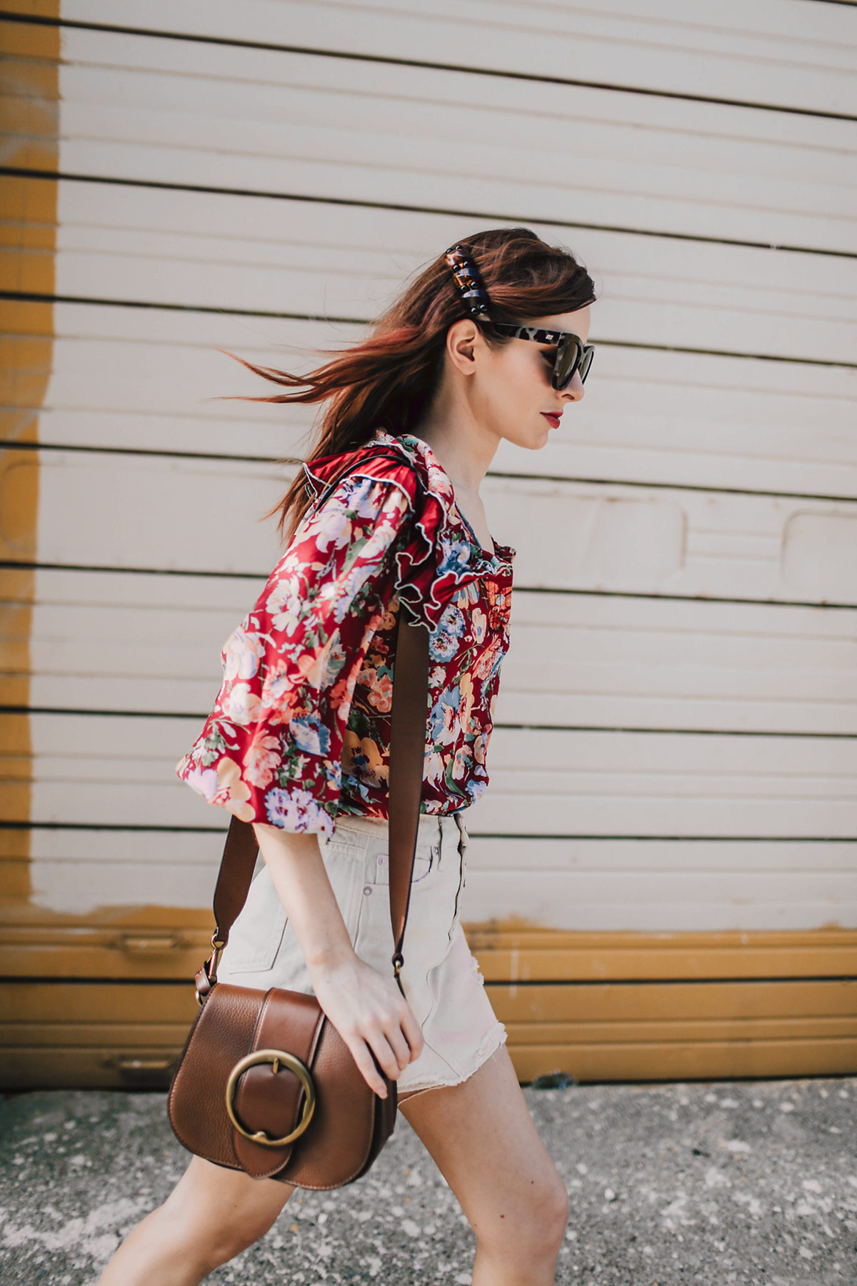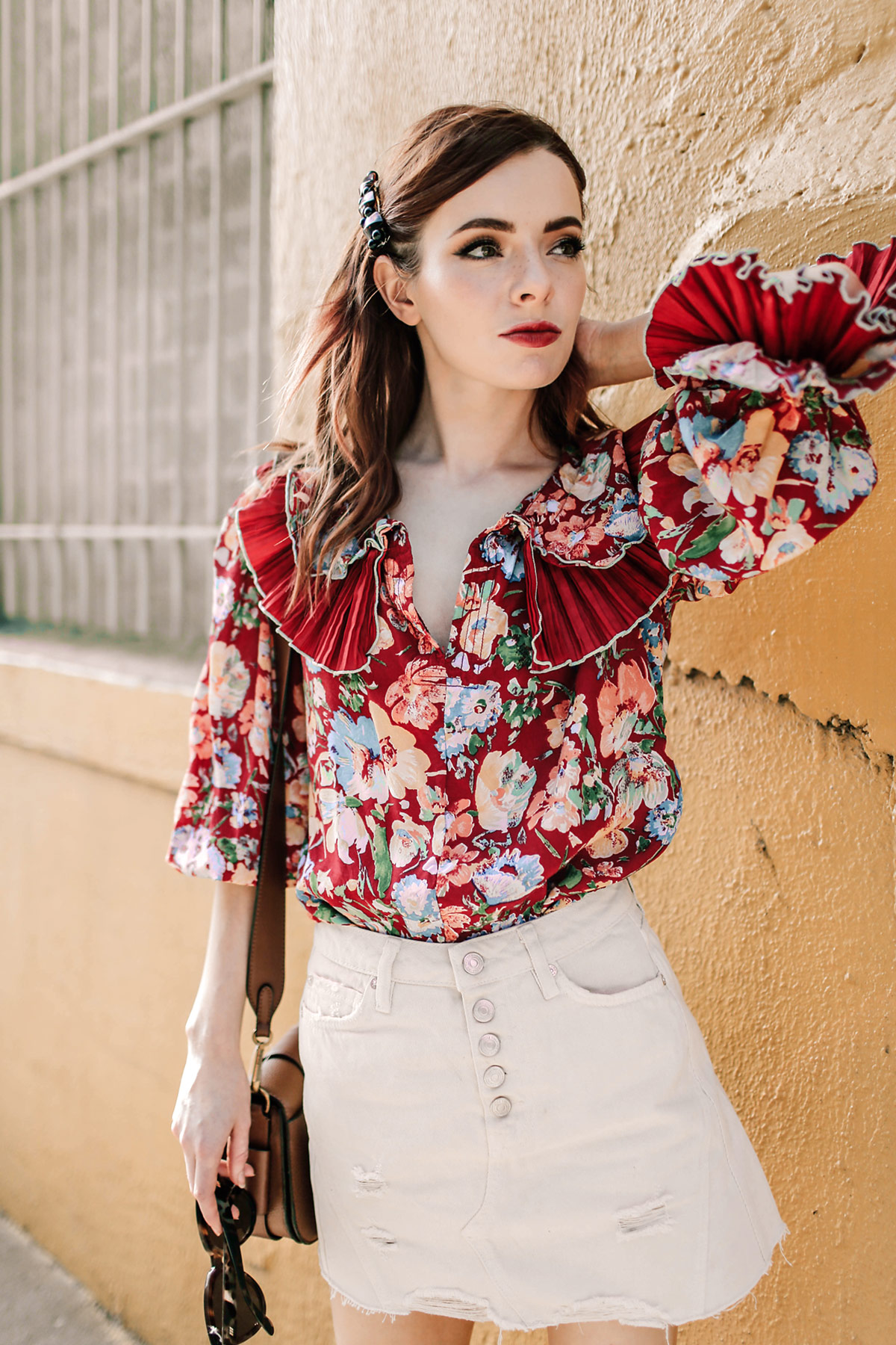 I’ve been craving a white denim miniskirt for easy summer outfits and I finally got this one at Free People. When it’s scorching hot outside and you’ve got a bit of tan going on, nothing could be more appropriate and simple to style. With a band tee and a fun pair of pumps for a concert, or with leather sandals and a tank top for a weekend off. I wore mine with this vintage Jeanne Marc blouse and a big 70s barrette. Worn with Le Specs sunglasses, Golden Goose sneakers, and a Polo Ralph Lauren bag.